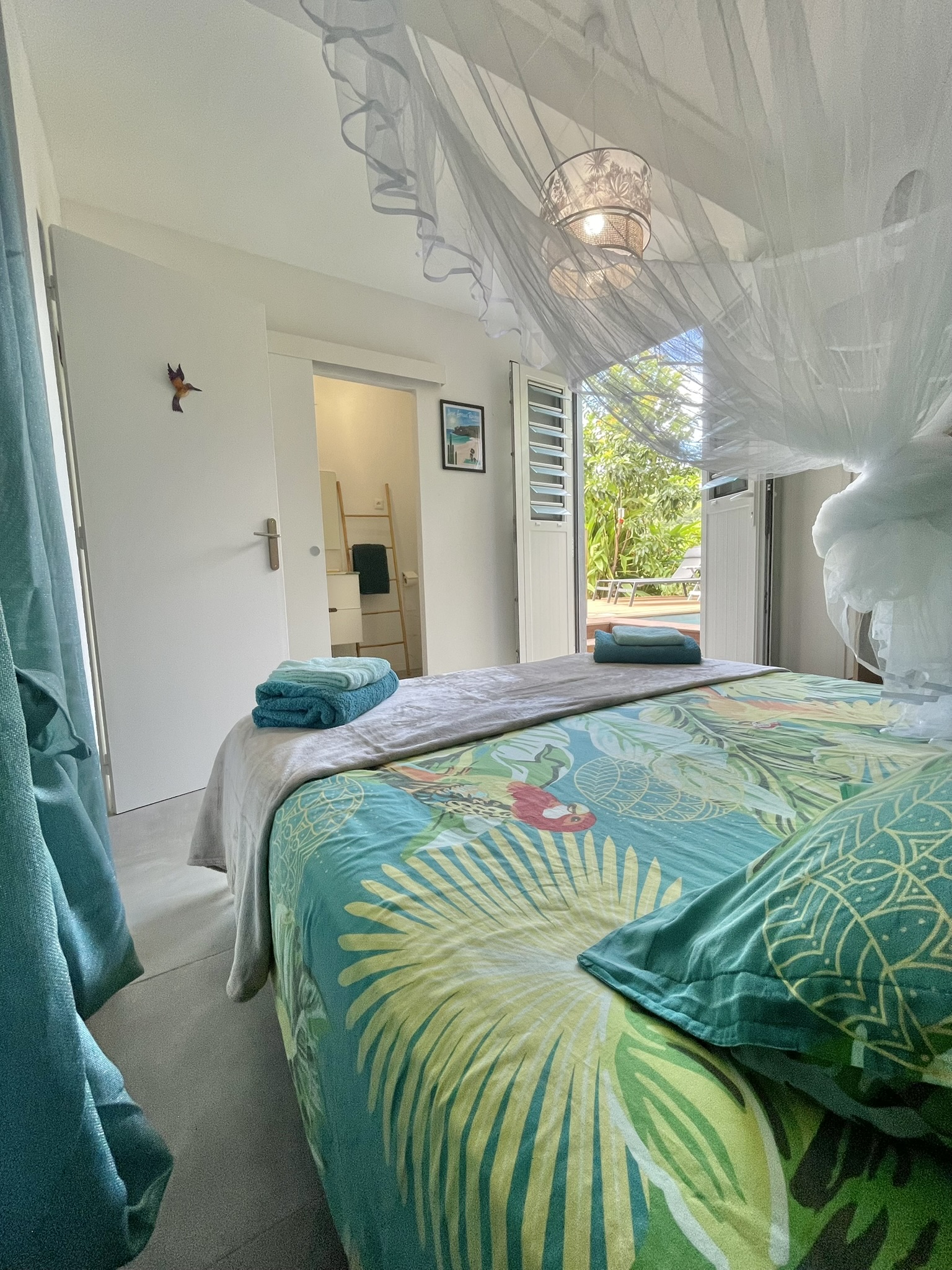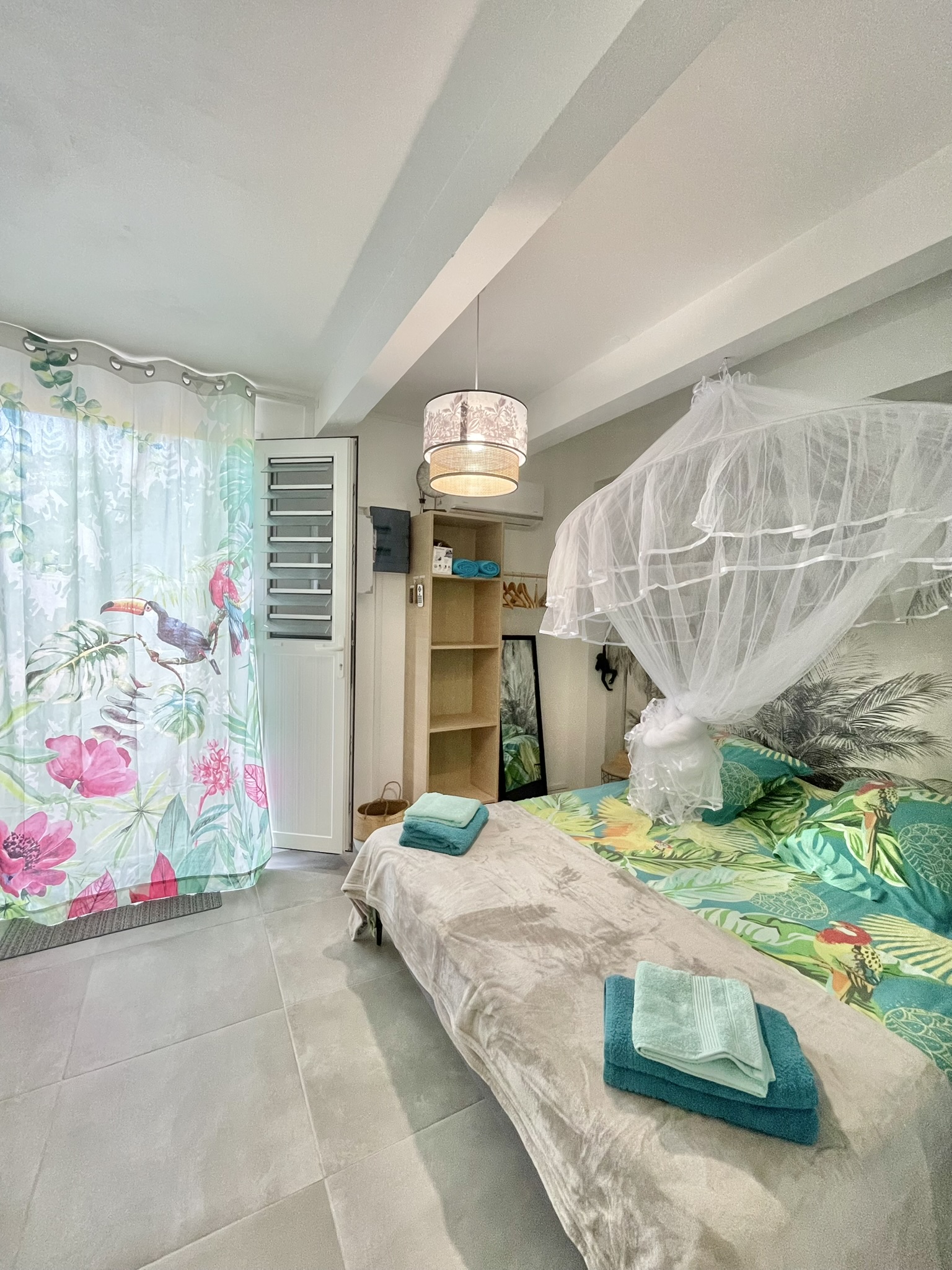 The lodge is located on the heights, only 3 minutes from Sainte Luce and 5 minutes from its beaches, in a beautiful and very quiet residential area. The atmosphere in Lodge Douceur Tropicale is cozy and comfortable. More than a Bungalow, in this lodge you will find the equipment and furniture to spend a vacation marked by comfort and tranquility. You will appreciate its well-appointed interior living space as well as its very practical and welcoming covered outdoor space.