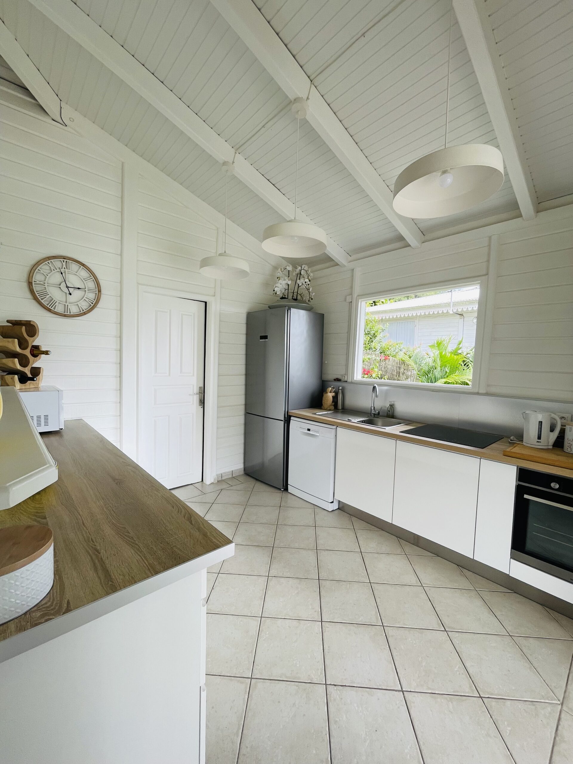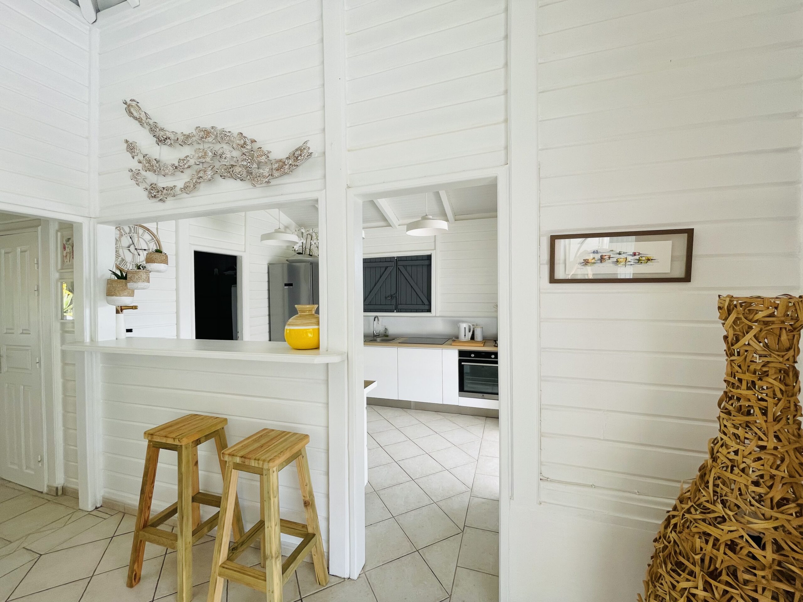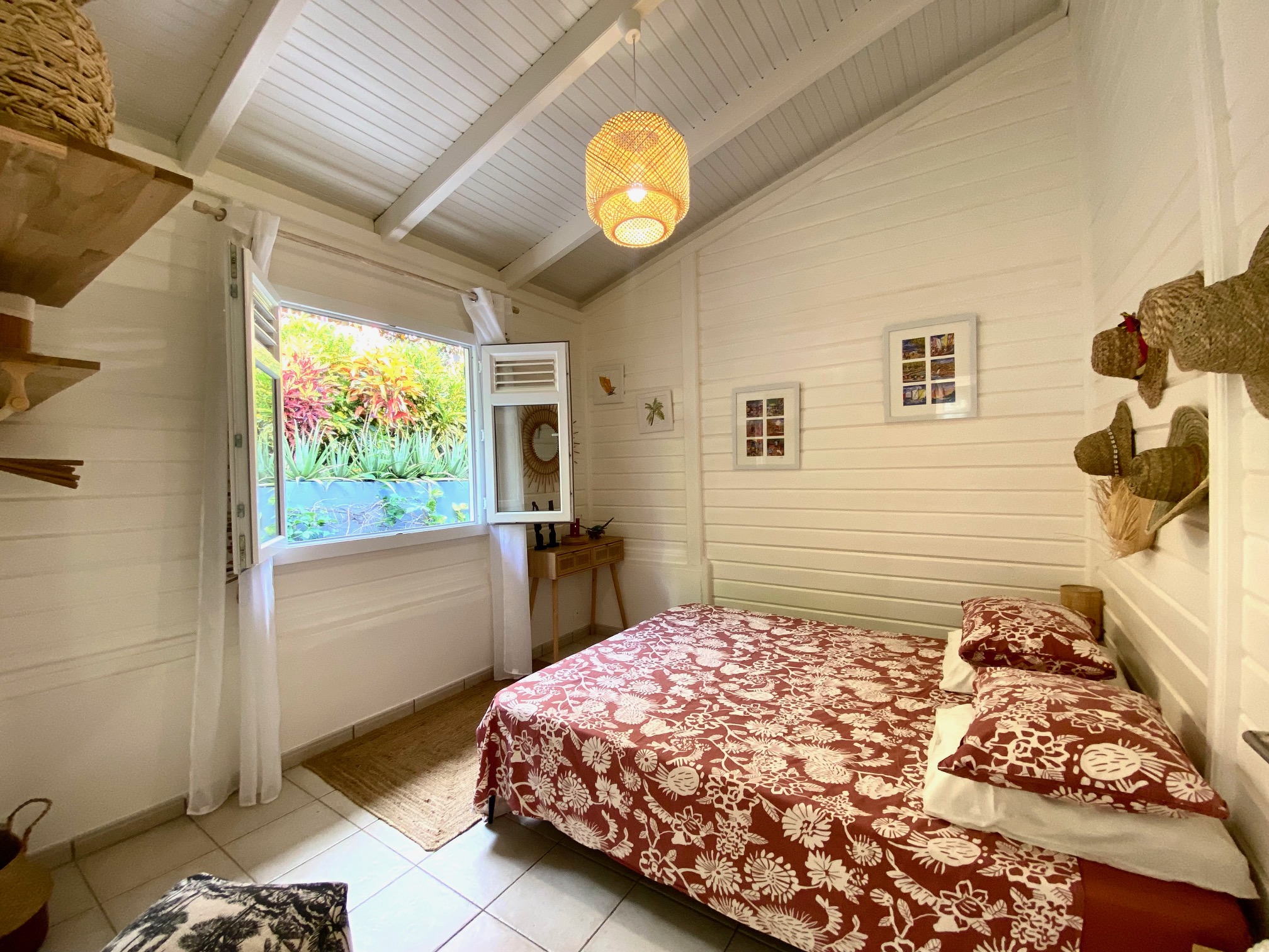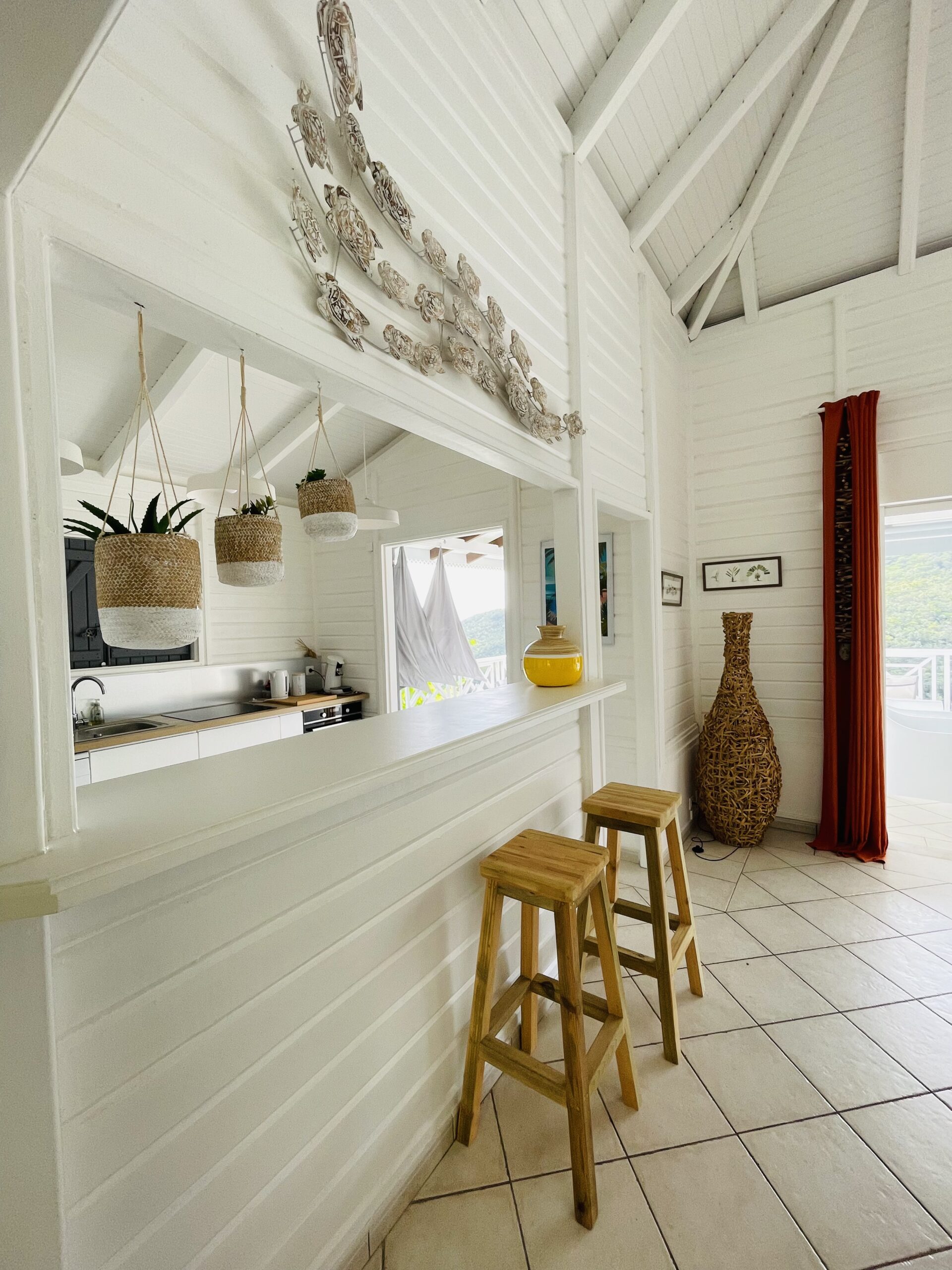 The interior of my villa Tropical Sweetness rental is in the purest tradition of Creole wooden dwellings with its beautiful cathedral roof: