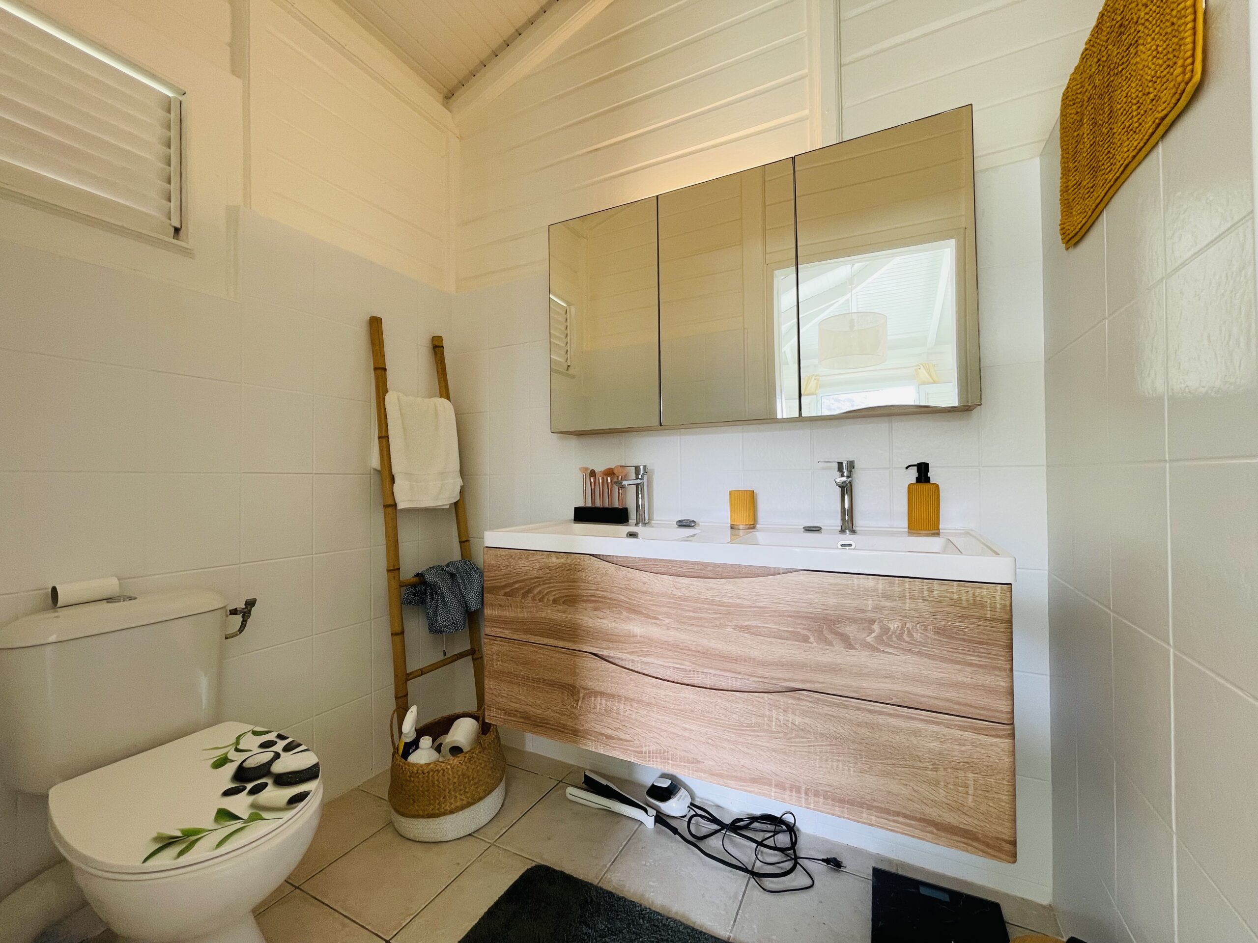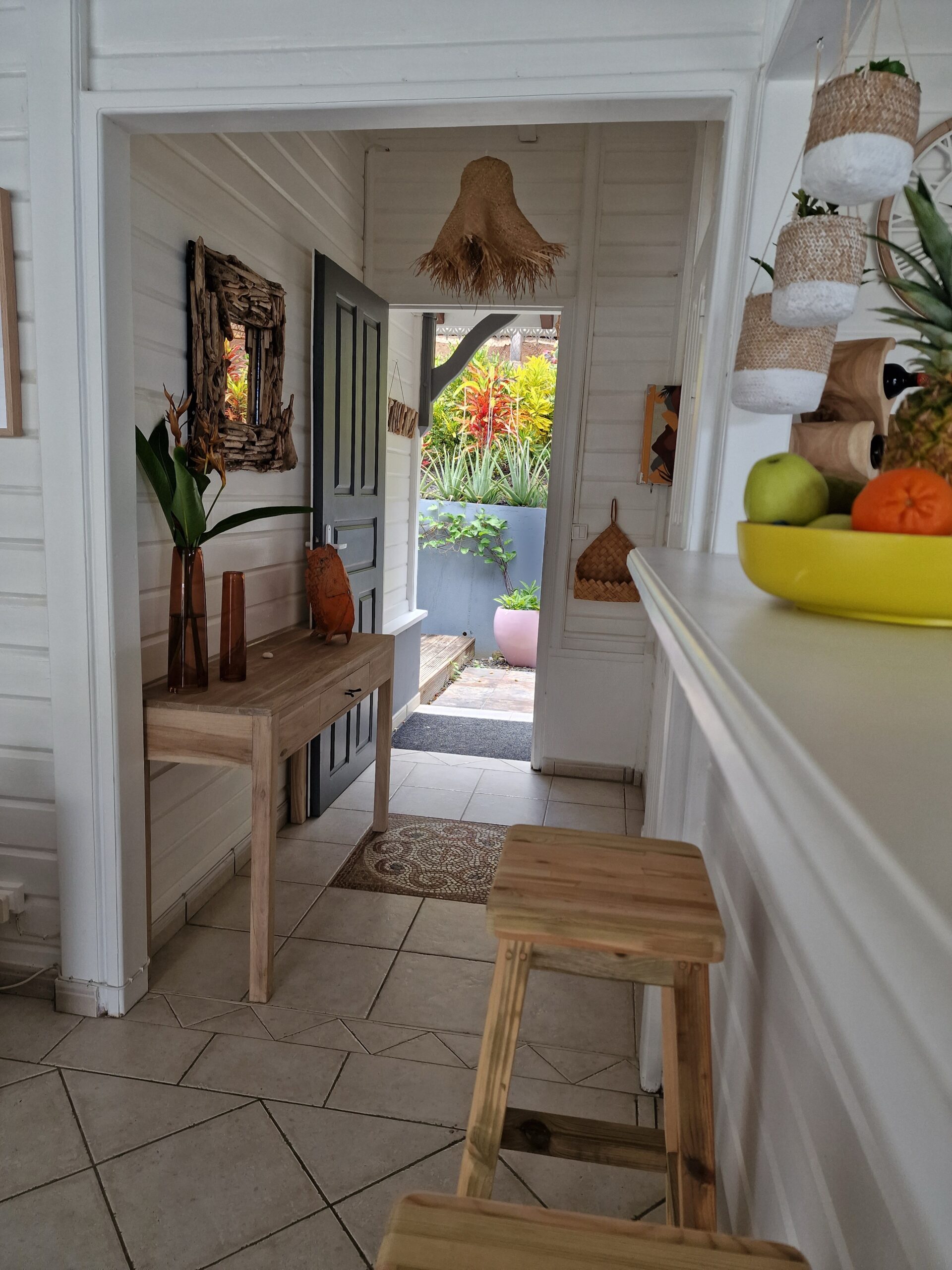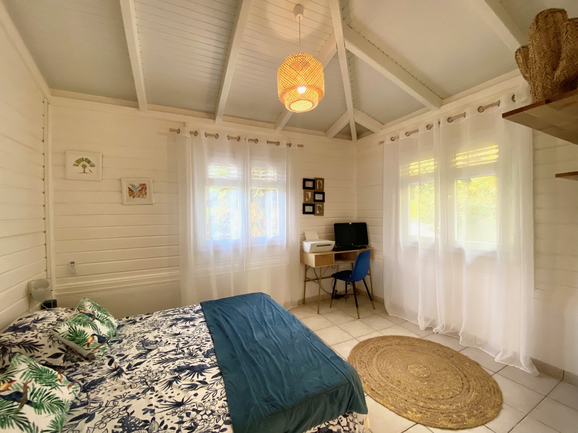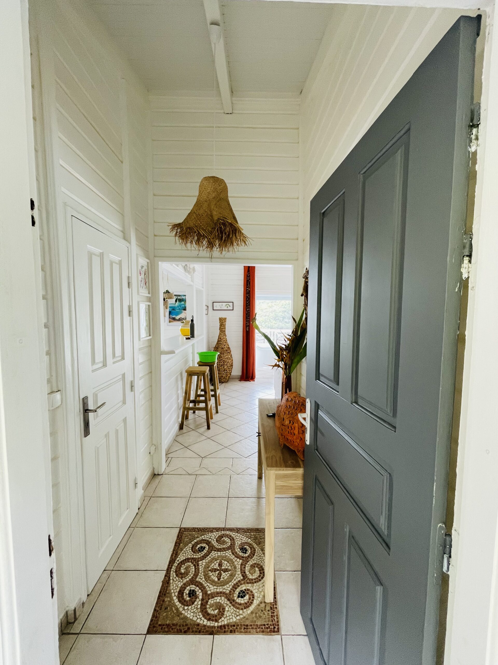 The interior of my villa Tropical Sweetness rental is in the purest tradition of Creole wooden dwellings with its beautiful cathedral roof: